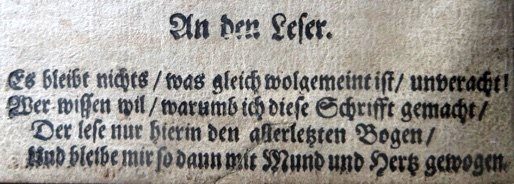 „Es bleibt nichts / was gleich wolgemeint ist / unveracht!