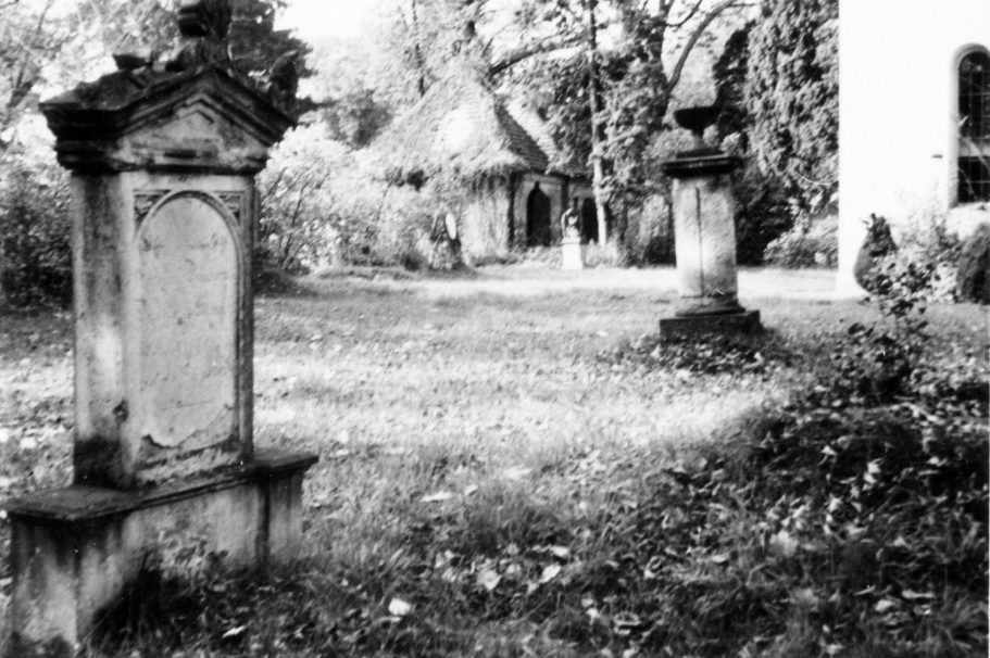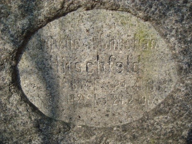 Als letzter ist der Grabstein des Ehepaars Hirschfeld auf dem Gelände des einstigen Burglehnfriedhofs heute noch zu sehen. Ferdinant Christian Hirschfeld gehörte als gräflicher Badewärter zu den standesherrschaftlichen Bediensteten also zu den Burglehnern. Er starb am 26. Februar 1917, einen Tag nachdem er mit seiner Ehefrau die diamantene Hochzeit feierte und vom Superintendenten Nay ein Gnadengeschenk von 50 Mark erhielt. Seine Ehefrau Juliane Hirschfeld geb. Menzel starb am 6. Juli 1927 im Alter von 93 Jahren.7