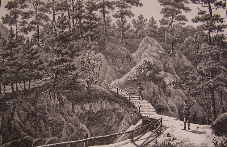 Alaunberge, Lithographie von Ludwig Eduard Lütke, 1825