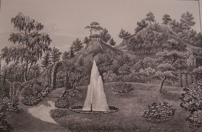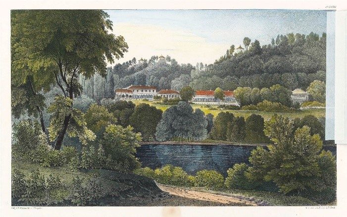 Gegend vor Erbauung und Ansicht der ganzen Badeanstalt aus Andeutungen über Landschaftsgärtnerei,1834, Sammlung Stiftung „Fürst-Pückler-Park Bad Muskau“