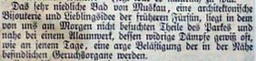 Borott schrieb begeistert über Muskau: „Ein neuer beachtenswerther Nahrungszweig des Orts ist das eine halbe Viertelstunde von der Stadt Muskau südlich derselben unmittelbar am Fuße der allmählig gegen das linke Neißufer sich abdachenden Alaunbergen neuerrichtete Bad mit der Vorderfront gegen die große Landstraße nach Rotenburg und Niesky. Das eigentliche Badehaus bildet ein längliches Viereck, um welches von allen Seiten ein Korridor sich zieht, wo nebst der Wohnung des Bademeisters die Mineral- und Schwefelbäder, an der Mittagsseite aber die beiden Fürstenbäder mit zinnernen Wannen und kostbaren Möbeln versehen, sich befinden.