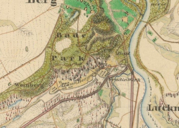 Messtischblatt 1845 mit Bad, Alaunbergen und Gradierwerk
