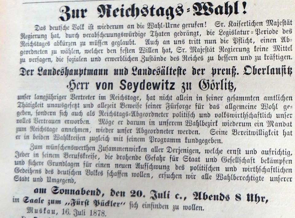 Zwei emsige Forscher der regionalen Geschichte, Helga Heinze und Holger Klein, suchten 2024 das Archiv der Universitätsbibliothek Wrocław/ Breslau auf, da sie wussten, dass es dort umfangreiche Bestände des Muskauer Anzeigers aus dem 19. Jahrhundert gibt. Zwei Tage lang wurde fotografiert und beide kamen glücklich mit Fotodateien von 13.000 Seiten aus 27 Jahrgängen des Anzeigers nach Bad Muskau zurück. Darunter Anzeigen von Gaststätten und Gewerbetreibenden, Muskauer Geschichten und Bekanntmachungen zu „Badegästen und Fremden“, die hier Quartier genommen hatten.