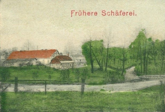 Als Rasenmäher sowie als Wolllieferanten plante der Standesherr Traugott Hermann Graf von Arnim (1839-1919) Heidschnucken im Park anzusiedeln. Dazu kaufte er 1884 in Stübeckshorn – heute zu Hötzingen in der Lüneburger Heide gehörend – 24 Mutterschafe a 15 und einen Bock a 20 Mark. Für sie ließ er einen Schafstall in der Größe von 16,00 x 7,60 m in Fachwerk auf der Schlosswiese am Petzoldweg errichten. Die Wolle, wegen Fettigkeit nicht hochwertig genug, verkaufte er an die Fabrik Orientalischer Teppiche Oskar Prietsch in Cottbus. Im Juni 1886 brachte die Eisenbahn zwei Säcke Wolle zu 35 Mark pro Zentner von Muskau nach Cottbus.6 Im Wirtschaftsjahr 1936/37 legt die Standesherrschaft für das Dominium Weißkeissel eine Viehbestandsbewertung von 5.451,62 RM vor, darunter befanden sich auch zugekaufte Schafe.7