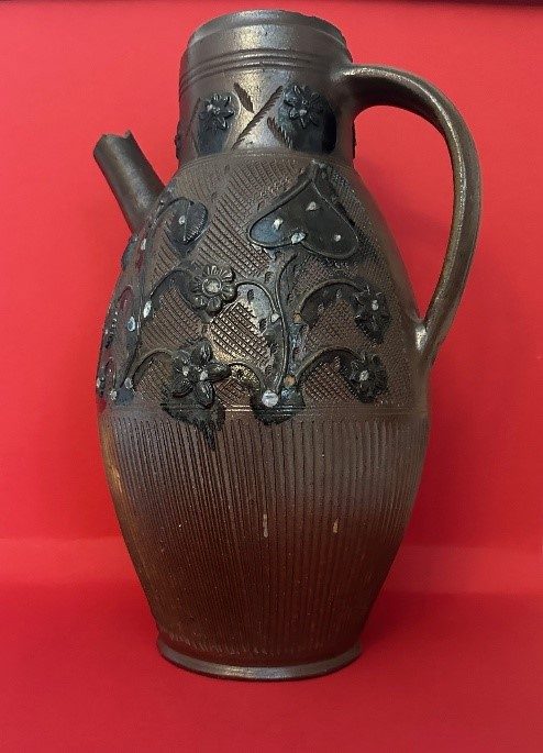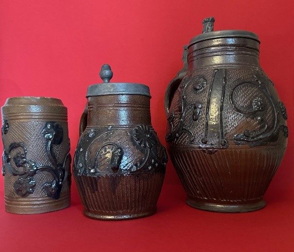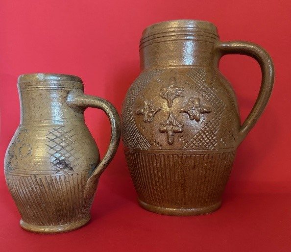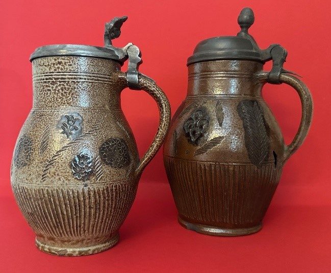 Helga Heinze, die unseren Verein mit ihrem Wissen und Beiträgen zur Muskauer Geschichte, die auf der homepage zu finden sind, hervorragend unterstützt, überraschte uns zum Jahresende mit einer umfangreichen Schenkung. Acht Muskauer Krüge, Steinzeug, Salzglasur, meist florale Auflagenauf genetztem Grund, hergestellt um 18. und 19. Jahrhundert, fanden Eingang in die bereits umfangreiche Sammlung von Muskauer Steinzeug im Bestand des ehemaligen Museums der Stadt Bad Muskau und des Freundeskreises Historica.