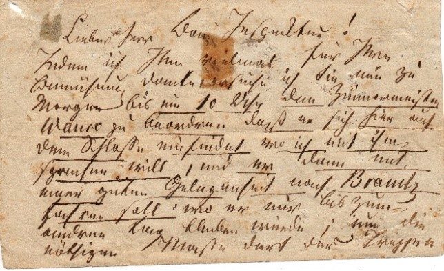 Herr Martin Baetge reiste im Oktober extra nach Bad Muskau, um dem Verein sieben Poesiealben als Schenkung zu übergeben. Seine Ururgroßmutter Wilhelmine Petzold, verh. Fähndrich, war die Halbschwester Carl Eduard Adolf Petzolds (1815 – 1891), dem Muskauer Park- und Gartendirektor unter Prinz Friedrich der Niederlande.