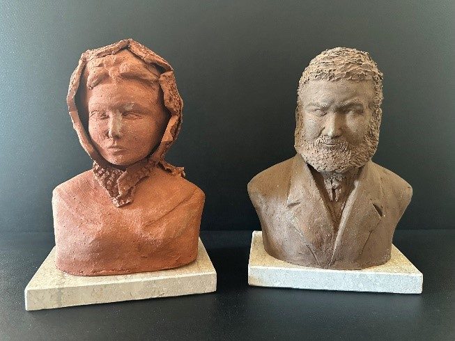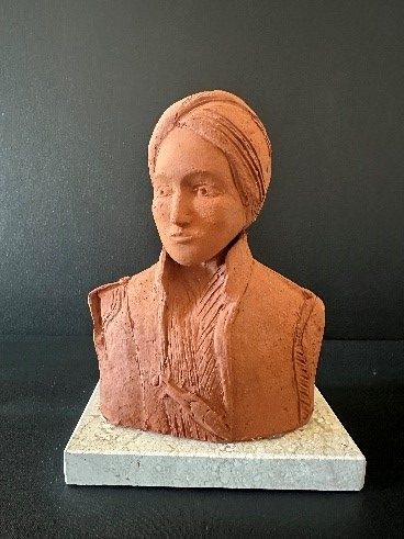 Margitta Schicht, Vereinsmitglied seit 2001, übergab eine von ihr in Ton gefertigte Büste des Fürsten Pückler-Muskau. Bereits 2024 schenkte sie uns die Büsten von Lucie von Pückler-Muskau und von Machbuba.