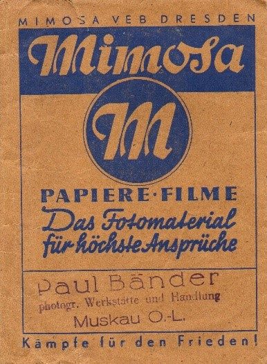 Ein mehr oder weniger unscheinbares Zeitzeugnis erhielten wir von Hannelore Jank, Zschorno in Form einer Fotohülle mit dem Firmenstempel des Fotografen Paul Bänder, photogr. Werkstätte und Handlung, Muskau O.-L.